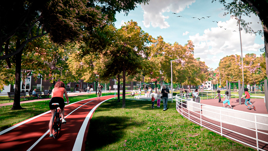 Posee el doble de cualquier otra urbanización central. Serán más de 12 hectáreas de espacios verdes, que no estarán nunca a más de 400 metros de cada vivienda.